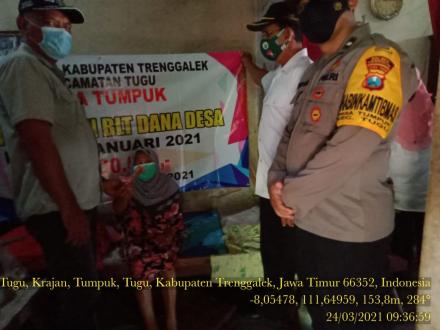 Penyaluran BLT DD Tumpuk Tugu Trenggalek Tahap Pertama Bulan Januari 2021 telah dilaksanakan door to door pada hari Rabu (24/3). Pemerintah Desa menyalurkan sebanyak 6 BLT kepada Keluarga Penerima Manfaat (KPM) dari sebelas Padukuhan se-Desa Tumpuk. Jumlah tersebut sesuai dengan hasil pendataan KPM yang diperoleh dari muasyawarah di tingkat padukuhan untuk kemudian ditetapkan di tingkat kalurahan melalui Musyawarah Desa Khusus (Musdesus).