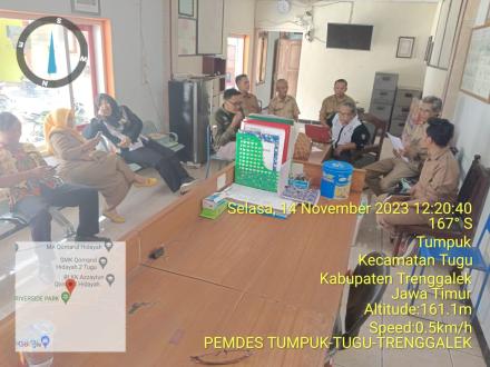 Kegiatan Monitoring & Evaluasi (Monev) dalam pelaksanaan APBDesa Tahun Anggaran 2022 di Desa Tumpuk Kecamatan Tugu Kabupaten Trenggalek dilaksanakan pada siang tadi, Rabu, 14 November 2023.