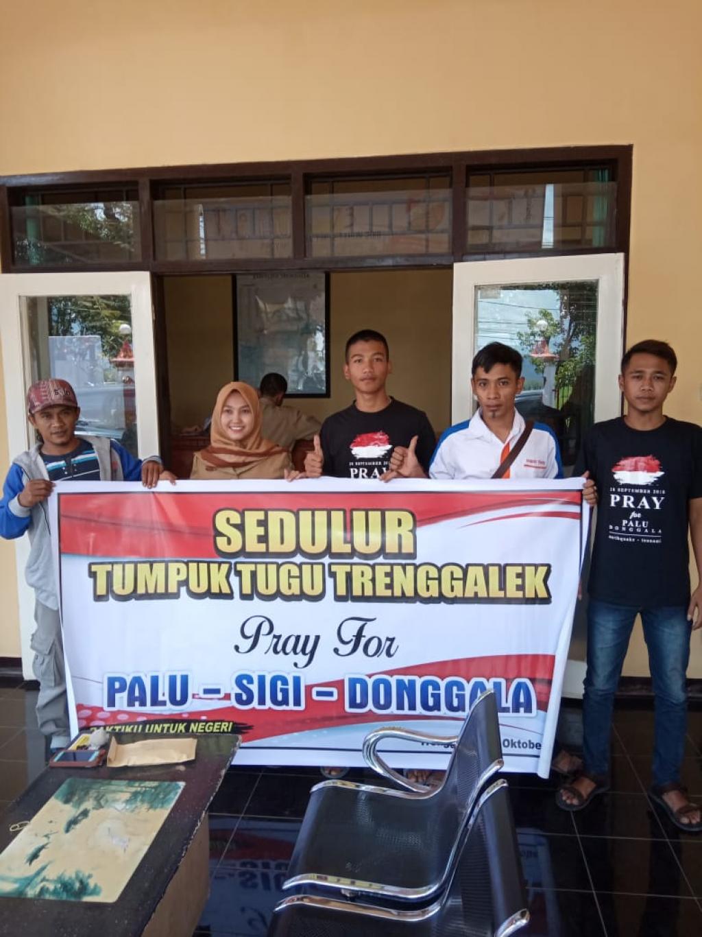 Diwakili oleh Bapak Basuki, Perangkat Desa dan Pemuda Tumpuk menyerahkan bantuan berupa uang sejumlah Rp. 7.00.000.00 kepada petugas posko Dinas Sosial Pemberdayaan Perempuan dan Perlindungan Anak (DINSOS P3A) Kabupaten Trenggalek. Dalam laporan yang disampaikan Kepala Dinsos P3A Trenggalek Dr. Ratna Sulistyowati tercatat bantuan dana yang diterima dari masyarakat Trenggalek sejumlah Rp. 156.892.700,00 berasal dari 34 kelompok mulai dari sekolah, perkumpulan masyarakat maupun OPD di Trenggalek. Rabu (24/10) Bupati Trenggalek Dr. Emil dardak elestianto, M.sc memberangkatkan bantuan yang disaksikan oleh Wakil Bupati H. Moch. Arifin dan PJ Sekda Drs. Pariyo di halaman Pendhapa Manggala Praja Nuggraha. Bantuan tersebut akan dikirimkan melalui Dinsos Provinsi Jatim yang nantinya akan diberangkatkan oleh tim di Surabaya yang selanjutnya akan disalurkan ke korban bencana di Palu, Sigi dan Donggala.